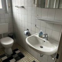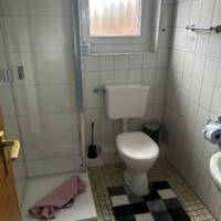 Das Badezimmer ist mit Dusche und WC ausgestattet.